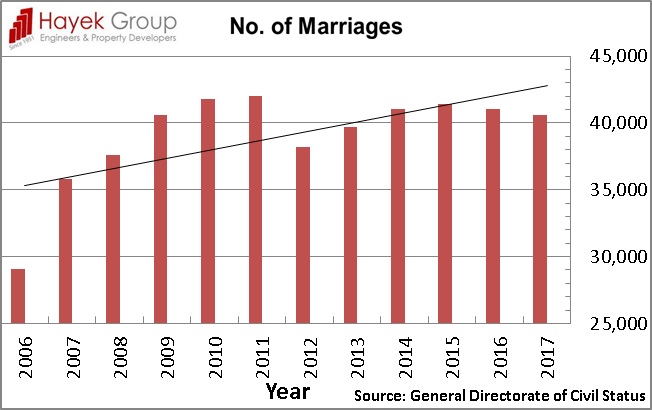In theory, most newlyweds are expected to buy a residential house in Lebanon, so analyzing the number of newlyweds would determine to some extent the minimum housing consumption needed.